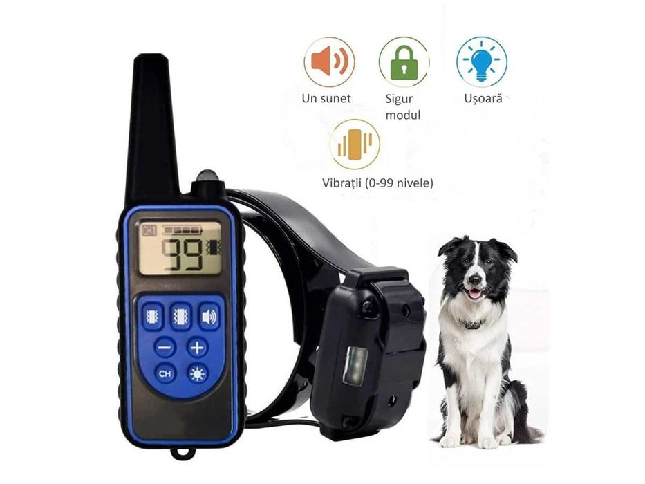 Zgarda electrica pentru dresaj canin, distanta de 800 m
