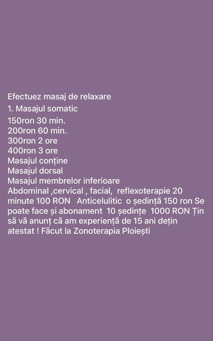 Intra pe OLX.ro si vezi toate anunturile din categoria de masaj de relaxare in Mizil ⭐ Cumpara masaj de relaxare second hand sau noi!