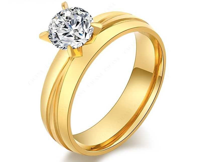 GR301, inel placat cu aur 14k, model logodna, zirconiu alb fatetat,nou