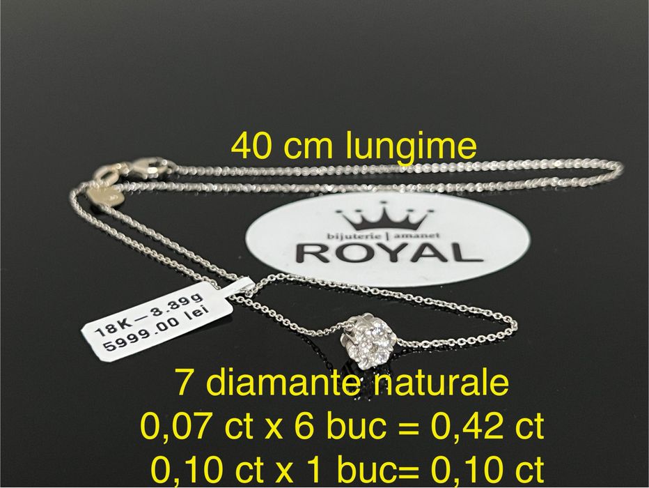 Bijuteria Royal CB : Lant aur alb 18K cu 7 diamante 3,39 grame