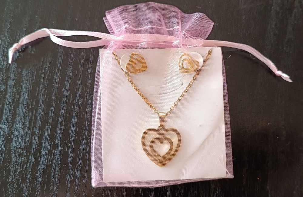 Cercei inimi + pandantiv set placat cu aur de 18k