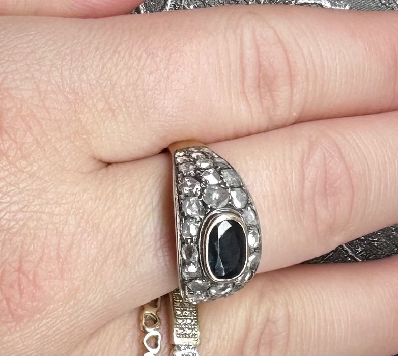 Inel din aur și argint, decorat cu safir și diamante, sf. sec. XIX