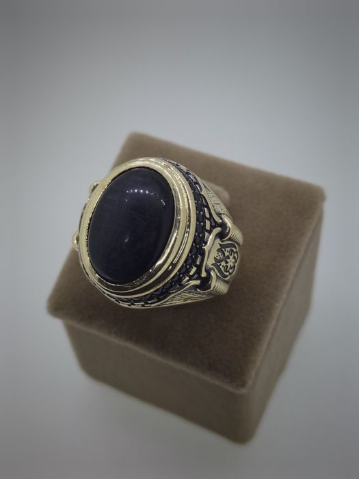 Inel,ghiul  barbatesc din aur 375 cu piatra albastra