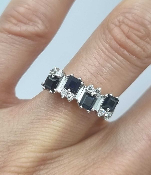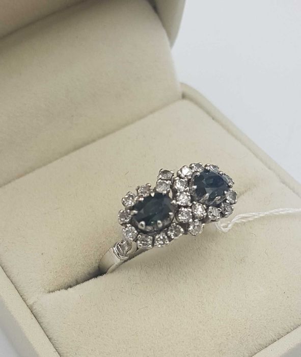 Splendid inel vintage din aur alb 18 k, diamante si safire naturale