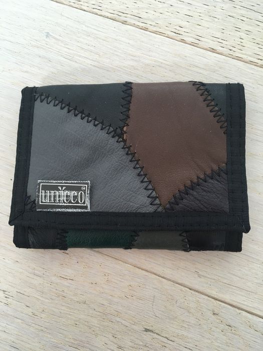 portofel din petice de piele colorate, cu loc pentru bancnote, carduri