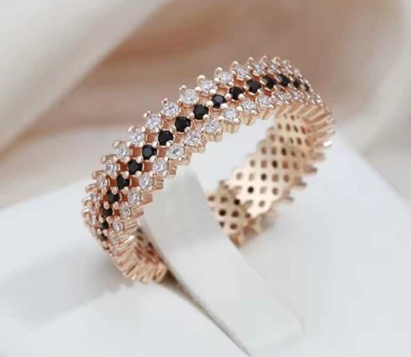 GR17,inel placat aur 14k,nou/marcat, tenis, zirconii albe si negre