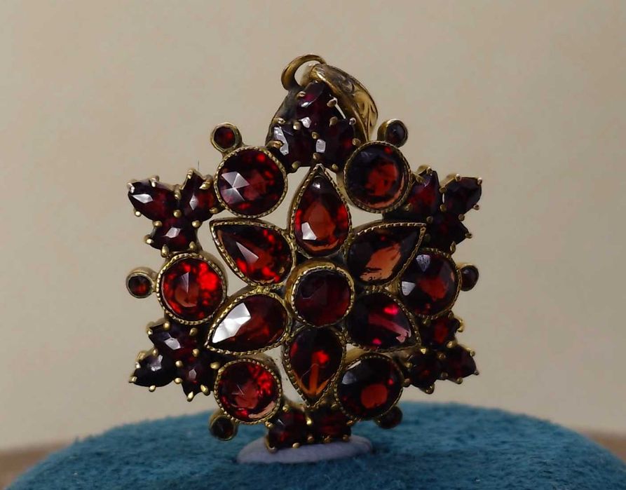 Pandantiv vintage cu granate de Boemia – posibil Victorian / Edwardian