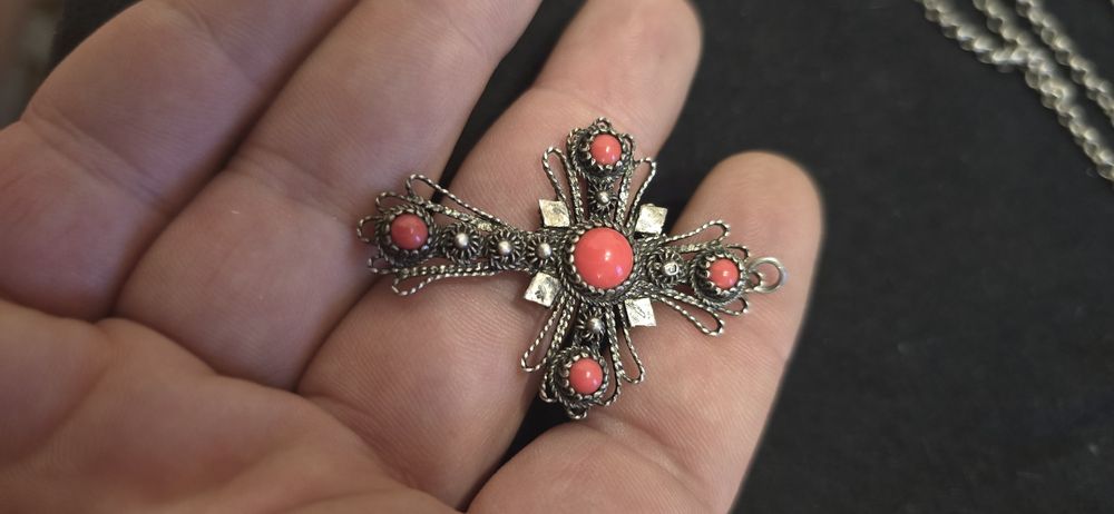 Cruce argint coral