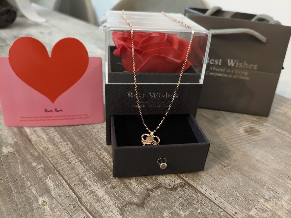 Set cutie cadou cu trandafir si lantisor inimioară cu te iubesc in 100