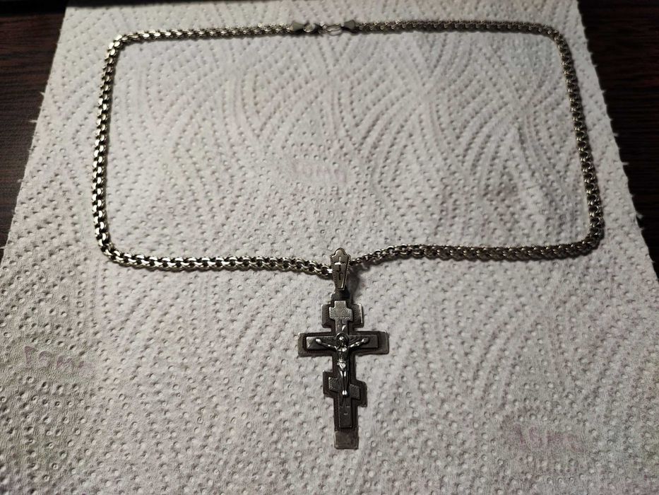 Lant vintage argint si cruce