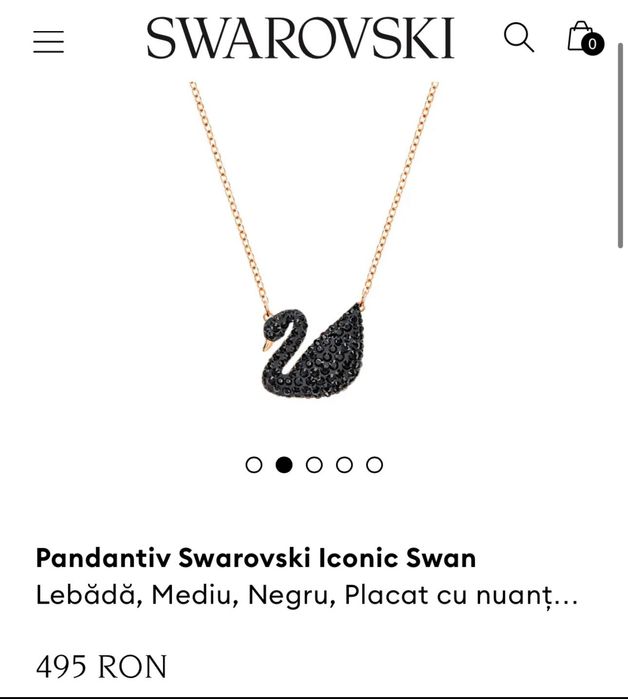 Colier Swarovski Swan lebădă neagra mărime medie cu lănțișor auriu