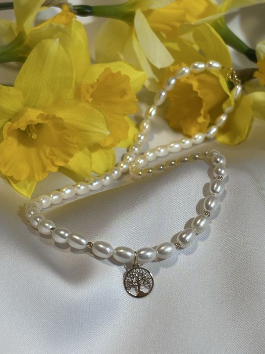 Colier din perle naturale de cultură cu Pandantiv pomul vieții aur 14k
