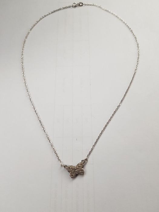 (42) lant colier argint dama 925 italy pandantiv fluture,nou,40 cm