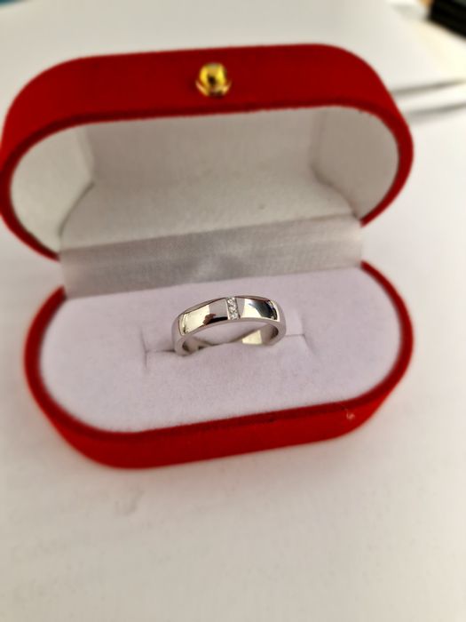 Inel logodnă aur alb 18K cu diamante – NOU- marimea 51