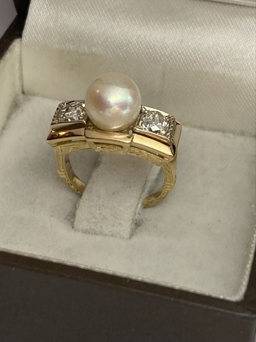 Inel vintage aur 18kt.cu diamante 0.55 si perla