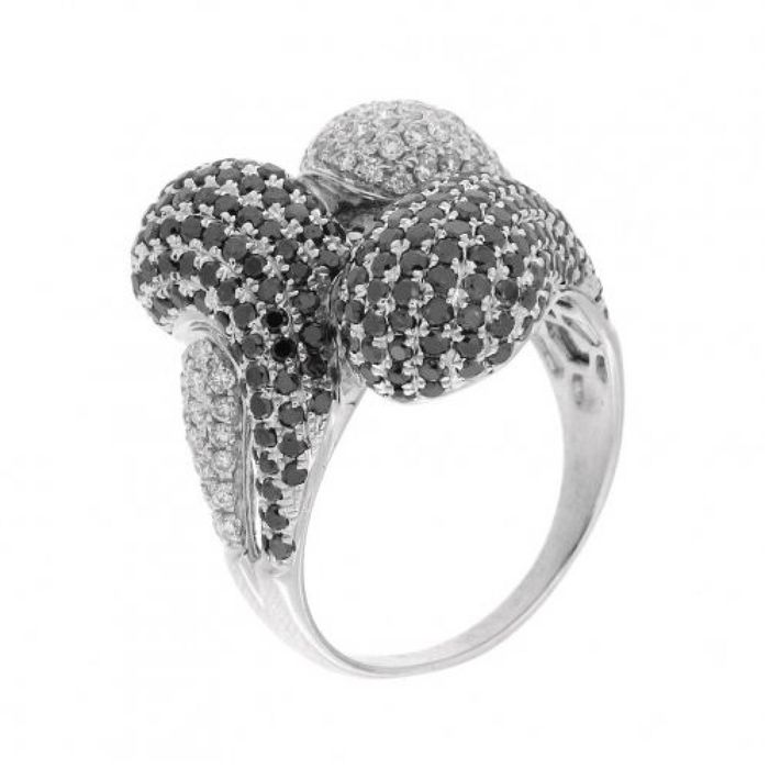 Inel din aur 18K cu diamante naturale albe si negre, IAU302