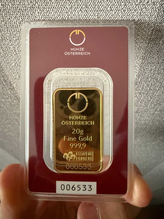 Lingou de Aur 24K, 20 grame, puritate 999.9, Munze Osterreich, sigilat