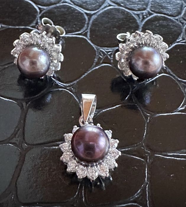 Set aur alb 18k cu diamante naturale si perle