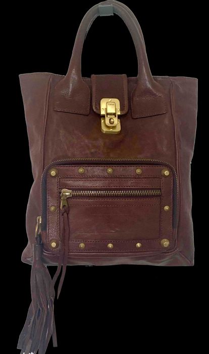 Auth Chloe Geantă Chic Verticală Piele Maro Tip Shopping Original