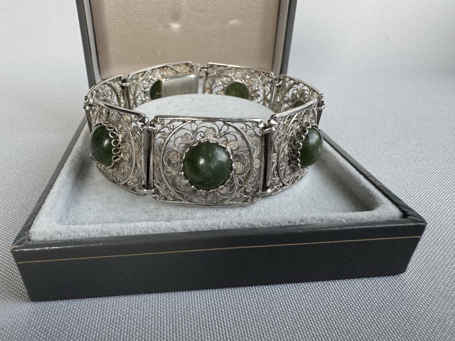 Bratara din argint filigran si jad cabochon