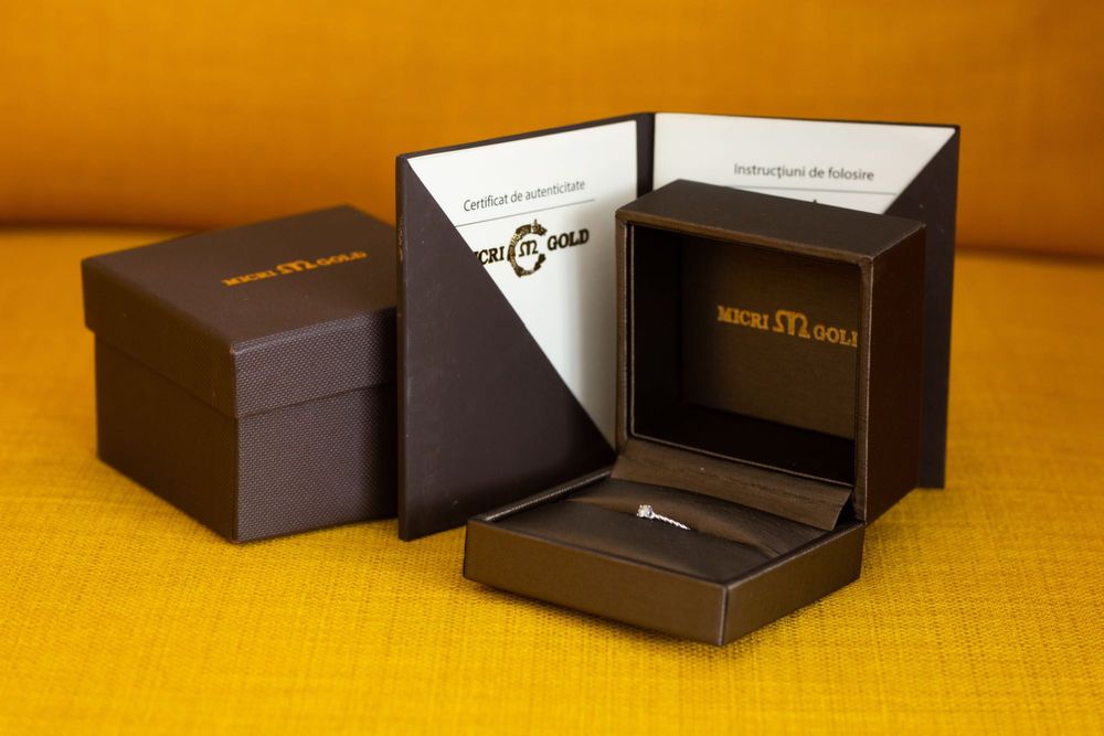 Inel de logodna din aur alb 585 si zirconia+ceas+boxa