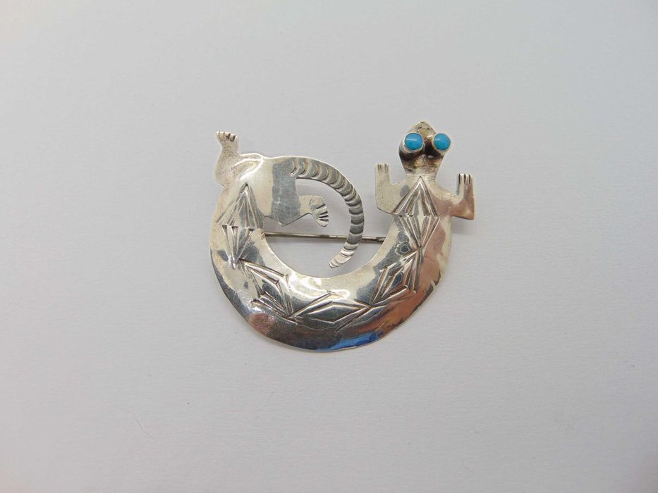 Brosa sarpe din argint cu turcoaz semnat S Skeets