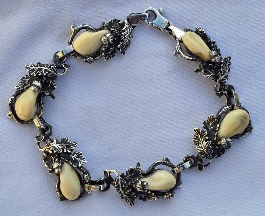 Brățară vânătorească de damă cu argint și "dinți de cerb"