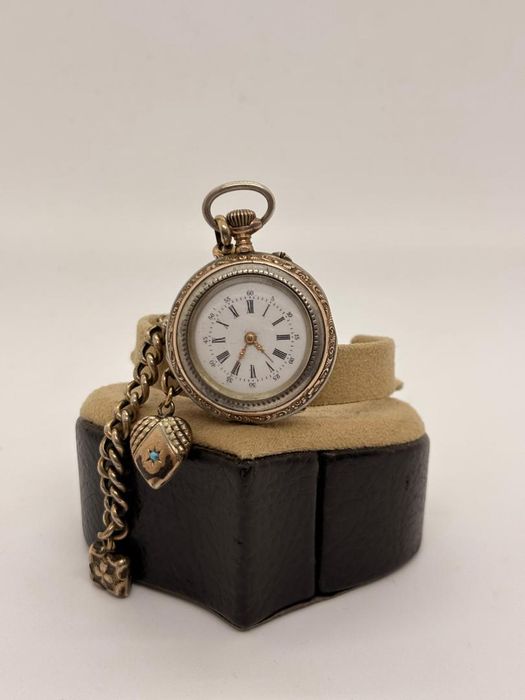Ceas de buzunar din Argint Cylindre cu 2 medalioane -A-