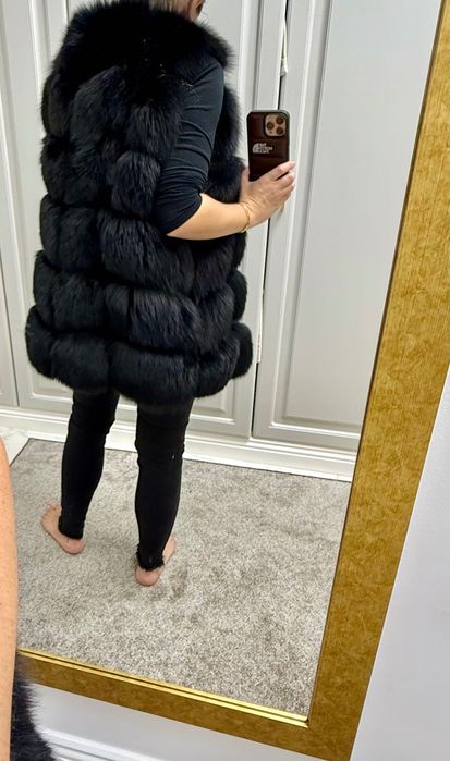Vestă blană neagră superbă, mărime S