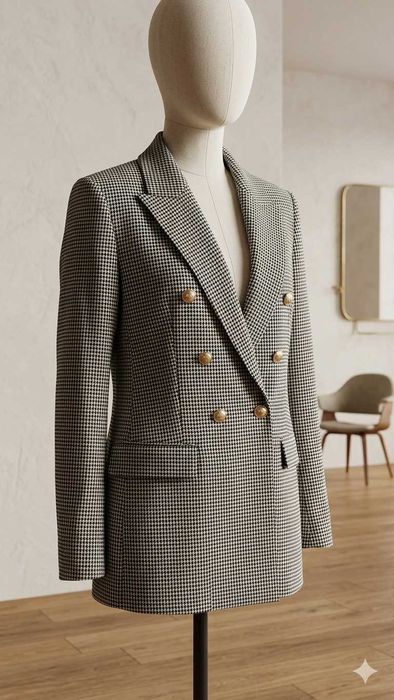 Sacou ZARA Double-Breasted – Nou – Imprimeu Houndstooth