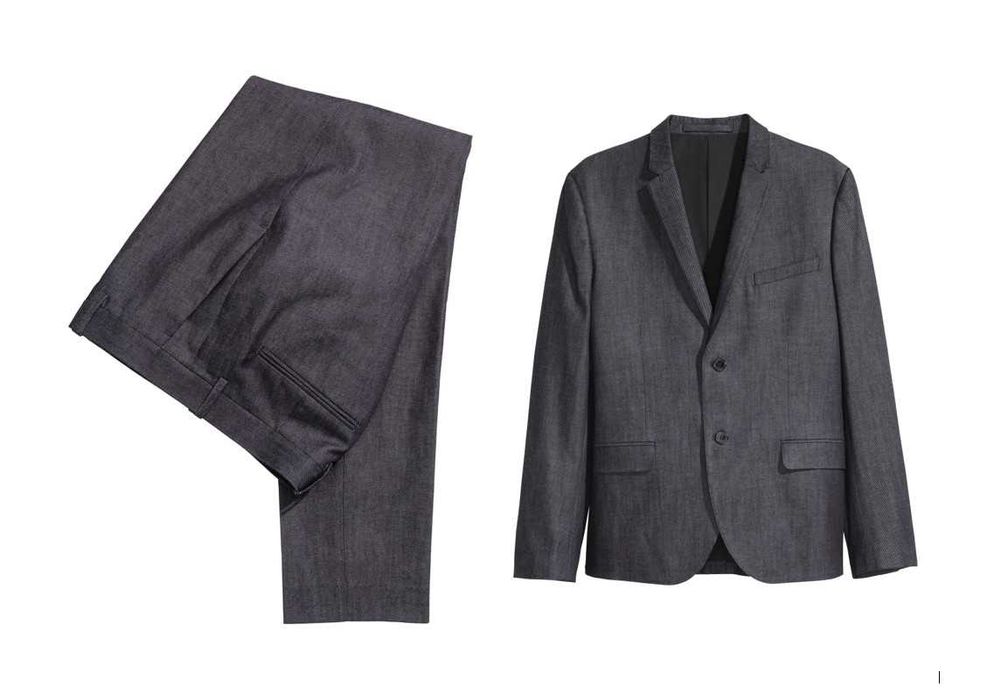 H&M costum denim slim fit mar.50/52 bleumarin/indigo, talie 90 cm, nou
