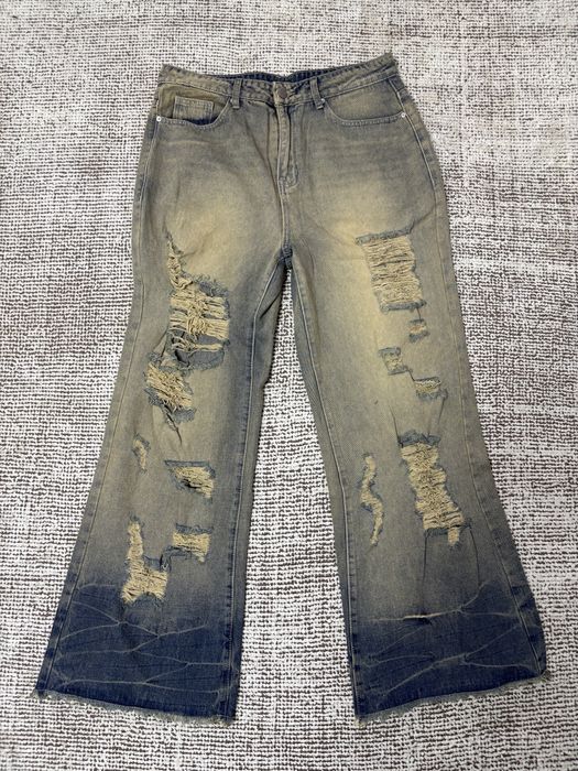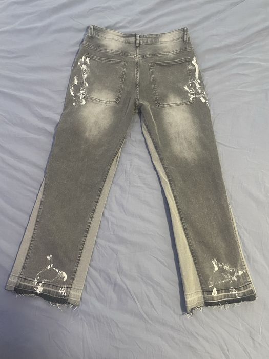 Blugi flared bootcut distressed custom made gri