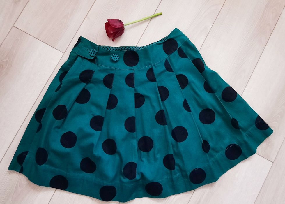 Fusta cu pliuri verde cu buline