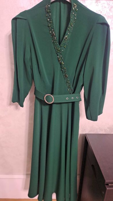 Rochie verde, midi, material de calitate, marimea 40 - 42