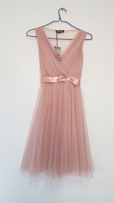 Rochie roz tulle marimea S cu detalii de perle pe bustul buretat