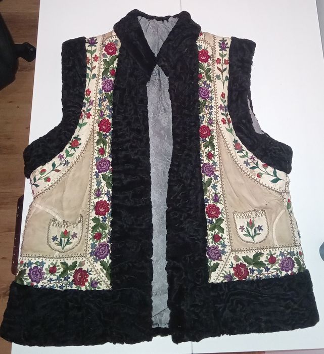 Vestă tradițională autentică brodată manual cu blană – costum popular