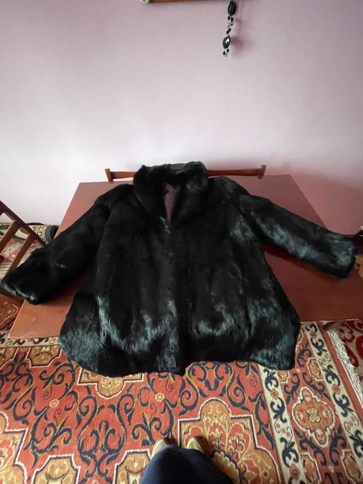 Haină de blană naturală din nurcă – nouă, neagră, elegantă