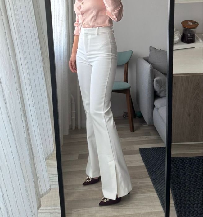 Pantaloni eleganți albi cu talie înaltă split hem Zara mărimea S