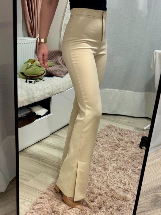 Pantaloni elastici eleganți talie înaltă split hem bej camel Zara  XS