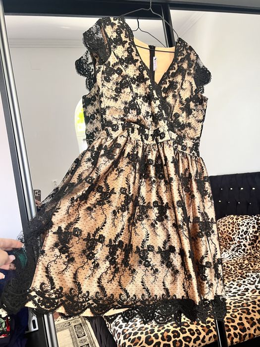 Rochie de ocazie aurie cu dantela neagra