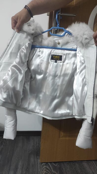 haina blana miel, guler vulpe, marime 50 [purtata o singura data]