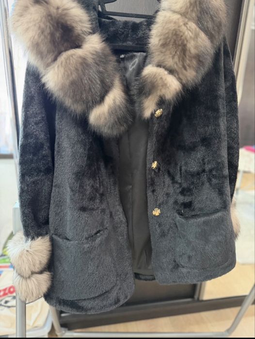 Vand palton din lana alcantara cu blana naturala de vulpe la 1550 lei