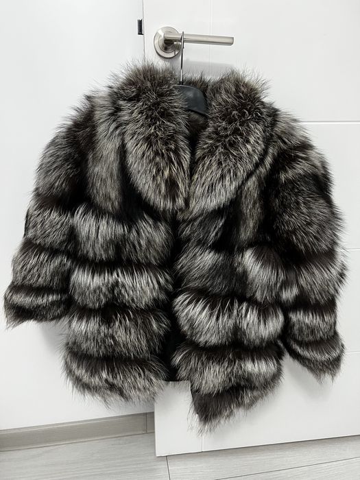 Haina de blana din vulpe argintie 2 in 1