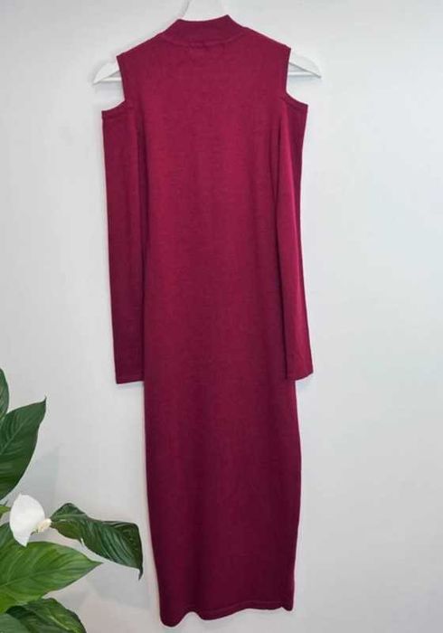 Rochie burgundy tricot - midi cu decupaj lateral