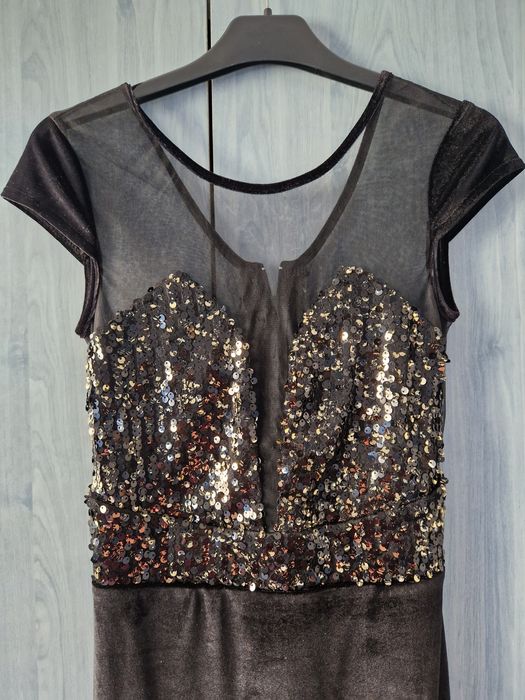 rochie neagră midi cu paiete argintii