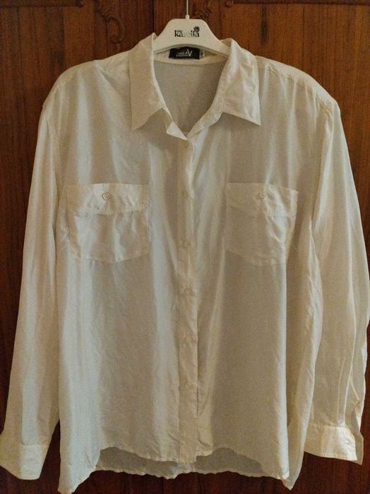 Linea V, bluza matase 100%, vintage, stare exceptionala, alb-fildes
