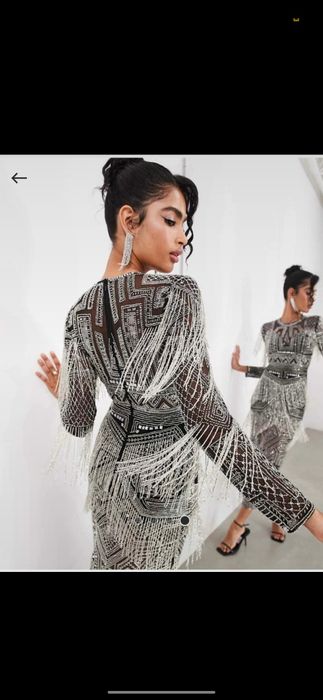 Rochie de seara verde cu franjuri