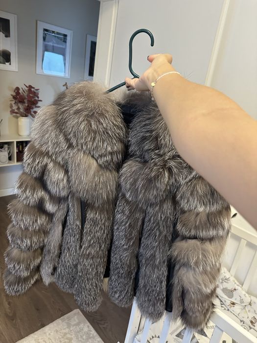 Haina din blana naturala de vulpe argintie