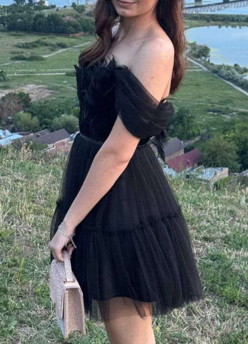 Rochie scurta XS pene și tul, atelier Mihaela Mitran Craiova