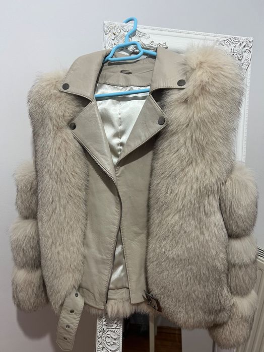 Geaca piele cu blana de vulpe